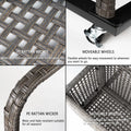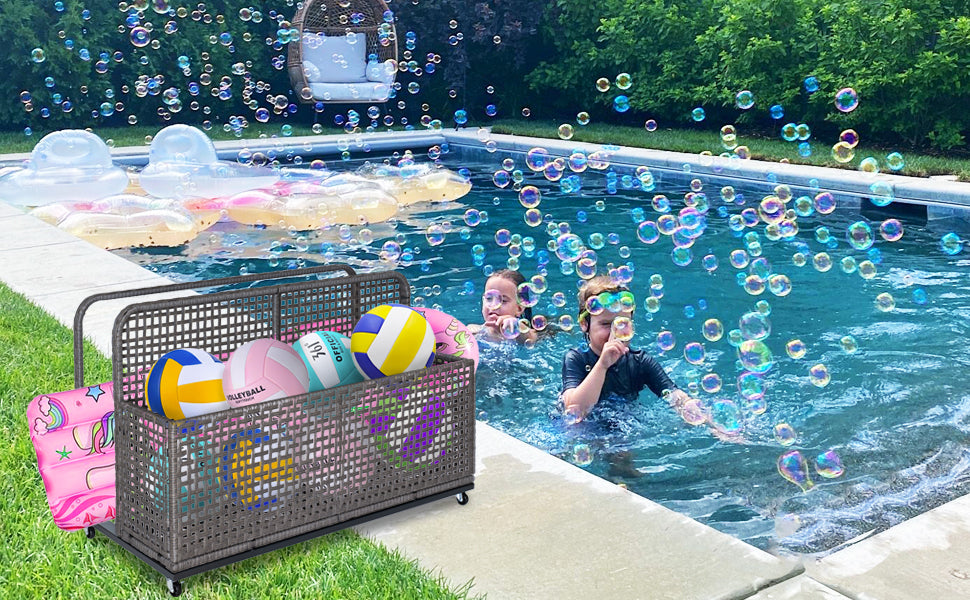 Conçu pour être pratique, ce panier de rangement est équipé de deux roues pivotantes et de deux roues verrouillables, vous permettant de le déplacer facilement dans votre espace extérieur. Sa base surélevée maintient le fond sec et propre, protégeant ainsi vos affaires et préservant une apparence soignée et élégante au bord de la piscine.